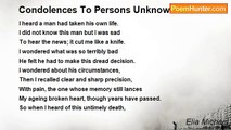 and he says <br />you don’t write poetry to please people, you know <br />that’s with a comma after people <br />you write poems to please you <br />with shock lines like I still treasure <br />our first condom oh my love <br />to show that you’re cool and hip <br /> <br />but she says why write poems at all <br />if they don’t please people <br />men have such egos I suppose <br />it’s because they can’t have babies <br /> <br />but who are people anyway, how <br />many persons make a people or <br />how few persons and are they <br />a random mix or is there like <br />a recipe, some of this lot some of that <br /> <br />he says people who know about these things <br />like poetry but how do you know <br />which are the people who know <br />I’m not sure I know he knows for a start <br /> <br />and she says well ordinary people <br />so what then do you slide up <br />to a bus queue when there’s no <br />bus in sight and say look you’re <br />ordinary people I’ve been looking for you <br />yeah watch them give you a nasty look <br />and skedaddle pretending they remembered <br />they were due some place else <br /> <br />I’m beginning to wonder if people really exist <br />I mean as such but I’ll have to stop there <br />my PC says it’s run out of virtual memory <br />that’s another thing I don’t understand <br />maybe people are just a virtual memory too <br />I’m beginning to wonder if anyone knows <br />what *people* should think about poetry <br />maybe they should just write it throw it away <br />see who picks it up and not never nohow talk about <br />other *people’s* poetry<br /><br />Michael Shepherd<br /><br />http://www.poemhunter.com/poem/are-persons-people/