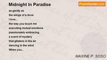 Your eyes comprise <br />A lullaby <br />of mystical madness <br />And... <br />seductive warmth <br />which heightens my sensitivity factor <br />uniquely interrupting <br />my chain of thought <br />conditioning my mind to comply <br />to the will of your command <br /> <br />And... <br />unfold my soul to behold <br />the magic that is you <br />When I see your face <br />I want to embrace <br />the sweet delectable essence <br />of your entire being <br />I'm mesmerized <br />entranced in a lackadaisical state <br /> <br />A place in the unknown <br />But, that doesn't matter <br />because, I am with you<br /><br />MAXINE P. SOSO<br /><br />http://www.poemhunter.com/poem/fantasy-33/