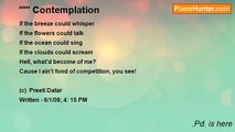 One single tear plummeting from the eye <br />Like one shooting star across a clear sky <br />Lonesome tear on a diminishing journey <br />Oh, what a poignant beauty! <br /> <br />- Preeti Datar <br /> <br />(19/01/2008)<br /><br />.Pd. is here<br /><br />http://www.poemhunter.com/poem/lonesome-tear/