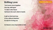 What is love but an ardor emotion <br />A treasure of the heart <br />Searching for a true loves kiss, such pure devotion <br />Wishing to seldom be apart <br /> <br />As I look into your eyes I see our present, future, and past <br />Your gentle touch and doting kiss sends tingles down my spine <br />The feeling of forever, a love meant to last <br />To inspire without reason, O what a sign <br /> <br />You're a song, a dream, a whisper <br />Now a memory fleeting from my head, once thought so true <br />Trying to recall how we doused this fire <br />What once was pure, what was simple, now gone askew <br /> <br />Two hearts once eternally matched <br />Are now timelessly detached<br /><br />Ashley Hart<br /><br />http://www.poemhunter.com/poem/wayward-heart/