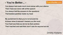 Try to see what is it that I’m feeling? <br />Try to find out what lies deep beneath <br />Beneath the pretty complexion of this make-up world <br />Beneath the pretense and the mind games that we play <br />Will you choose to display the truth for all to see? <br />Or join me in this game of hide, disguise and lies? <br />Perhaps it’s better to live in the abstract thoughts of others <br />Or maybe create a world all of our own <br />A little piece of heaven here on earth <br />You’ll be the Eve and Adam I <br />Surprise me with the apple <br />And tear us down from the clouds onto the floor <br />And as we fall with no regret <br />Laughing out of pride and out of boredom <br />We had the chance <br />We didn’t last <br />So what will follow us in time to come? <br />Will we build another paradise for just us two? <br />Or get the tickets to the one around the corner? <br />It’s always easier to blame others for the failure that we’ll face <br />It’s always much more appealing and amusing <br />To have a scapegoat in our sight <br />A little being to throw up for the sacrifice <br />And buy ourselves the time we’ll need to find another <br />Another image of a perfect life <br />Until the day that someone breaks in with the torchlight <br />And sheds the light unto the shadows that will dwell there in the corners <br />Revealing to our eyes what is already buried in our mind <br />No place is perfect <br />Nothing is faultless and pure <br />The evil that we pretend not to notice <br />Is ourselves playing god in this polluted garden of green gods <br />Gods of fortune fame and sin <br />Gods of material behavior <br />Of a soulless sense of existence <br />With no guilt, no time and no remorse!<br /><br />Dmitriy Kokarev<br /><br />http://www.poemhunter.com/poem/a-game-we-play/