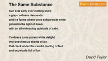 Life came round and round it came <br />some played serious some a game <br />people died and babies came <br />as life continued round again. <br /> <br />Church bells rung o'er village greens <br />morning mists clung to pensive trees <br />brides smiled and kissed their eager grooms <br />children played with bats and balls <br />flew kites that soared on far flung squalls. <br /> <br />Some grew apart but still hand in hand <br />some left, made other plans <br />and others with true love in heart <br />by life's fate were torn apart <br />for others they grew old <br />not really knowing what true love could hold. <br /> <br />We met deep in winters storm <br />with ice that clung from lives broken, torn <br />but slowly thawed as trust was born <br />and fears were shared and thoughts were warm. <br /> <br />The winter left and spring was sprung <br />the birds returned and sweetly sung <br />the summer heat with rain at times <br />grew the flowers and greened the grass <br />it was all that we could ask. <br /> <br />As autumn came and withered rusted leaves <br />fell upon the winter'd breeze <br />the branches bared and old wood cracked <br />as the we reached the end, the final act. <br /> <br />Life came round and round it came <br />and never was it twice the same.<br /><br />David Taylor<br /><br />http://www.poemhunter.com/poem/never-the-same-again-3/