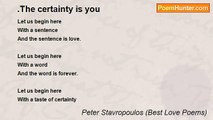 Wish upon <br />Another's heart <br />Let her be happy <br />Let her be strong <br />Let her Love right the wrong <br /> <br />Wish upon <br />Another's mind <br />Let it seek <br />Let it be free <br />Let it's knowledge find me <br /> <br />Wish upon <br />Another's soul <br />Let us journey <br />Let us travel far <br />Let our Love guide the star <br /> <br /> <br /> <br /> <br /> <br /> <br /> <br /> <br /> <br /> <br />By Peter Stavropoulos<br /><br />Peter Stavropoulos (Best Love Poems)<br /><br />http://www.poemhunter.com/poem/wish-upon/