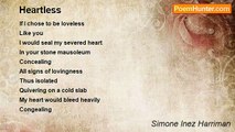 Mortally wounded <br />I die seeking <br />My warrior spirit guide <br />Who refuses to come <br /> <br />I enter the valley of shadows <br />In full battle cry <br />Armed with self righteous regalia <br />To defend my misdemeanours <br /> <br />I meet my mirror demons <br />As they capture me by my conscience <br />They gorge on my cancer <br />Stripping my angry spirit <br />Revealing the fighting child <br /> <br />Spiralling in the white light <br />The peaceful spirit evolves me <br />My hurtful self forgives me <br />Healing the frightened child <br /> <br />Formless and fearless now <br />Caressed and cocooned <br />In the maternal womb <br />My torn soul mends<br /><br />Simone Inez Harriman<br /><br />http://www.poemhunter.com/poem/formless-and-fearless/