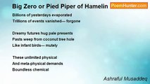 Moon swims slowly <br />I whisper your name to the night <br />Grasses grow softly <br />on the sandy footpath. <br /> <br />My nest incubates dream <br />from your breast <br />Your exquisite fingers <br />intertwine into my short hair. <br /> <br />Open your cabbage-heart <br />Let me enter into the zero point <br />Open your blue-cell <br />Let me enter into the memory card. <br /> <br /> <br /> <br />Poem 40 <br />Book 'Beckoning Jade-Dreams' April 2007 <br />Copyright Musharrat Mahjabeen <br />Mizan Publishers, Dhaka, Bangladesh <br />ISBN 984-8700-82-X<br /><br />Ashraful Musaddeq<br /><br />http://www.poemhunter.com/poem/01-zero-point/