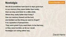 When I was young, <br />I often wandered off on my own, <br />my eyes exploring everything I saw <br />and filed it away in my memory store. <br />Now as I’ve got older <br />those insignificant things <br />come back to me now and then. <br />They fill my life with sanity <br />when I think I’m going around the bend. <br />Some of those things <br />I incorporate in whatever I write. <br />A touch of nostalgia <br />for others who remember them as well. <br /> <br />28 April 2008<br /><br />David Harris<br /><br />http://www.poemhunter.com/poem/a-touch-of-nostalgia/