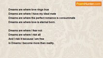 Dreams are one of the tools that move us today. <br />It helps us work for success, fame and glory. <br />But no matter how big or how small the dream is <br />people continue to chase their dreams. <br />Maybe the dream of being famous or the dream of a perfect love <br />or any dream. That what god made dreams inside your sleep for <br />To dream away when all dreams are fulfill and hope of people are still alive within. <br />To this dream is my dream I want everybody to put their anger aside. <br />I want people to not settle their differences with wars and massacres on innocent families. <br />Dreams is what i believe in so i follow and pursue them. <br />People call other people fools saying that chasing their dreams <br />is like seeking a holy grail. <br />That will never be found because it doesn't exist. <br />Well i say people need to fulfill their dreams to move and do better things to the world we live in. <br />This is my dream and failure is never the option<br /><br />Compton Wright<br /><br />http://www.poemhunter.com/poem/dreams-262/