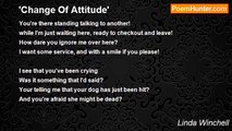 Everything you loved of me, <br />You seem now to hate. <br /> <br />Everything you felt was sexy, <br />You now humiliate! <br /> <br />You call me names that do not fit, <br />this person that I am. <br />But for some small reason, which I can't explain, <br />I am becoming lesser than. <br /> <br />Are you so insecure that your jealous of me now? <br />I can't think of any other reason, why you've changed towards me somehow. <br /> <br />Take for instance the time you called me; 'A Tramp, a Pig, a Whore.' <br />You seemed to want to continue, but your anger wouldn't let you say much more. <br /> <br />Now what would you say if I stopped loving you, and left you far behind? <br />At this point my dearest husband, I really think you wouldn't mind. <br /> <br />God never intended me to grieve this loss, of the love I have for you I feel, <br />You've had a change of heart of love that was, <br />But it wasn't, really, real. <br /> <br />I'll pick myself up again, and love another I'm sure, <br />He will have the heart of love for me, that is a gentle, kind and pure. <br /> <br />And if I am not to find true love, <br />that awaits maybe you one day. <br />It's better then the way I'm living, <br />In your loveless, change of heart kind of way!<br /><br />Linda Winchell<br /><br />http://www.poemhunter.com/poem/change-of-heart-7/