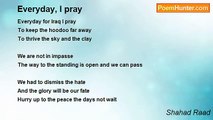 I am prisoner in a dim <br />If my heart beats, the ribs will kill him <br />I am near the crater rim <br />Everyone antagonize me because I'm Muslim <br />And I am the victim of terrorism <br /> <br />No rays in my life gloom <br />Shouting, death and war zoom <br />My life going on in that loom <br /> <br />But you are wrong <br /> <br />We rise the culture, we rise the art <br />We are innovators and we are smart <br />extremists are not the all only a part <br />So, don't blame us if in mistakes somebody falls <br />And don't put between us and you a wall <br /> <br />Shahad Raad-Iraq/Babylon<br /><br />Shahad Raad<br /><br />http://www.poemhunter.com/poem/shouting-in-silence/