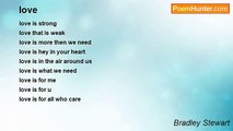 love in the past <br />love in the future <br />love that is hey <br />love that end's <br />love that is found <br />love that u & i share <br />love that I hate <br />love that u love <br />love that get's us through <br />love for everyone to share<br /><br />Bradley Stewart<br /><br />http://www.poemhunter.com/poem/love-peom/