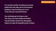 Before the birds start chirping <br />And people will begin rushing <br />Moments for merely breathing <br />Not far away from the morning <br /> <br />Tranquilized time of dawn of the day <br />Diligently waiting for the first sun ray <br />The sky is yet black and dark grey <br />Will be brightened without delay <br /> <br />Stars have not gone out of sight <br />Moon is shining still very bright <br />But it is not the time of night <br />The most halcyon time to indite <br /> <br />Cold wind defeating the summer <br />The dew point is ready to occur <br />Traffic of the city is at its leisure <br />Usualy crowded, when day’s sizzler<br /><br />Jyoti Sunit Chaudhary<br /><br />http://www.poemhunter.com/poem/quatrain-the-dawn-of-one-summer-day/