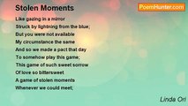 How many moments stand out in your mind <br />As heart-stopping moments truly defined <br />By all that you wish for, your hopes and your dreams <br />Those moments created by magic, it seems <br />They give your life meaning, true passion and zest <br />Those ones you remember above all the rest; <br /> <br />Acknowledge those moments - remember them well <br />For they hold the stories experience tells <br />Your life is a tapestry woven each day <br />By each precious moment that life brings your way <br />Whenever you're weary and put to the test <br />Remember those moments and know you've been blessed. <br /> <br /> <br /> <br />For Max - Happy Birthday! <br /> <br />10/05/2008<br /><br />Linda Ori<br /><br />http://www.poemhunter.com/poem/moments-41/