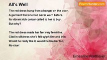 Whisper to the wind, <br />Hey, wind, please stay calm. <br />Give a gentle breeze, <br />And do us no harm. <br />Blow away the rain, <br />So that there is none. <br />Then all will be well, <br />When the day is done. <br /> <br />Whisper to the rain, <br />Hey, rain, that feeds all. <br />When you need to cry, <br />Let it gently fall. <br />Wash away the dust, <br />Freshen up the soil. <br />Then all will be well, <br />And the day won’t spoil. <br /> <br />Whisper to the sun, <br />Hey, sun, shine on me. <br />Let me know your warmth, <br />All your heat is free. <br />Brighten up the hours, <br />Setting in the west. <br />Then all will be well, <br />Our day truly blessed. <br /> <br /> <br />© Ernestine Northover<br /><br />Ernestine Northover<br /><br />http://www.poemhunter.com/poem/all-will-be-well/