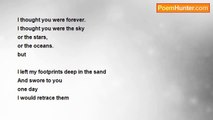 It rained this morning. <br />I could have sworn <br />I saw you dancing <br />in the puddles <br />water trickling from your hair <br />like teardrops. <br /> <br />I could have sworn <br />I heard you laughing <br />at the thunder <br />your eyes afire <br />reflecting the lightning <br />like mirrors <br /> <br />I thought to join you. <br />I even looked for our umbrella <br />but it wasn't where you'd left it <br />Still, I had to join you. <br />So I dashed outside <br />into the rain. <br /> <br />I looked for you beside the puddles <br />but I didn't see you dancing. <br />I was puzzled for a moment <br />Till I remembered that you'd left me <br />And I remembered you don't love me <br />anymore <br /> <br />I felt so silly <br />thinking that I saw you <br />An honest mistake <br />I'm sure, <br />but I stood there beside the puddles <br />listening for your laughter in the thunder <br /> <br />water trickling from my hair <br />into my eyes <br />and down my cheeks <br />like teardrops.<br /><br />TP Sage<br /><br />http://www.poemhunter.com/poem/an-honest-mistake-2/