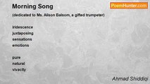(dedicated to Musica Viva Australia) <br /> <br />a river full of hopes <br />we fly peaceful flags <br />let your song be delicate <br />water can hear singing night <br /> <br />beauty imposes reverence in star <br />hear joyful tune in Summer dew <br />quietly as honey buds she goes far <br />leaves our souls with longing view <br /> <br />loves come so eloquently <br />sparkles in all earth and skies <br />slow waltzes enter tenderly <br />spirit of light beautify our hearts <br /> <br />(inspired by Vincent van Gogh's Starry Night Over the Rhone)<br /><br />Ahmad Shiddiqi<br /><br />http://www.poemhunter.com/poem/a-hymn-to-star/