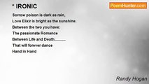 IN THE roughest of seas, <br />a warship wages war with a raging storm <br />in absent abyss of light, <br /> <br />First mate shouts out 'ship', <br />as he points to light in the night. <br />Warships send a signal of warning <br />(no response, no reply) <br /> <br />Warships send a signal of warning again, <br />but, a warship will not give way nor give in. <br />(no response, no reply) , <br /> <br />Warship captain, at his wits limit, is very irrate. <br />His reply, send a signal with this warning, <br />'I will run you down and damn you to dark- <br />ness, to an eternal night of the abyss. <br />(a response, the reply) <br /> <br />Damn me? Damn me? Damn me <br />to eternal darkness of the abyss? <br />By the eternal light of my lighthouse, <br />run me down and you shall fly <br />WHEN WARSHIPS HAVE WINGS! ! ! <br /> <br /> <br /> <br /> <br />A captain of a warship so quick to judge, <br />with all his weapons of war could not win a war <br />over a little light, Hmmmmmm <br />Peace.... and let your little light shine my friends<br /><br />Randy Hogan<br /><br />http://www.poemhunter.com/poem/a-little-light-2/