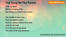 I long to breathe the warm air of the summer <br />Giving me life and the flowers around, <br />Wherever I look I see colours and beauty <br />Reaching for miles on the mosaic ground. <br />And I walk through the gardens of <br />Wonder and paradise, <br />Their sight and scent is all I need <br />To set my spirit free. <br /> <br />I long to breathe the warm air of the summer <br />Climbing the hillsides that reach to the sky, <br />Seeing the views and to witness their treasure <br />The fields and the meadows the clouds passing by. <br />As I walk through the valleys where <br />The rivers gently flow, <br />So clear and fresh the water as <br />It winds towards the sea. <br /> <br />I long to breathe the warm air of the summer <br />A forest of angels I truly have found, <br />Wherever I look I can see their fine branches <br />Waving in breezes so sweet is their sound. <br />As I walk through the shaded green <br />I hear them softly sing, <br />Their voices carried on the wind <br />Their music plays for me.<br /><br />ANDREW BLAKEMORE<br /><br />http://www.poemhunter.com/poem/forest-of-angels/