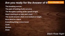 Broken with sorrow.. <br />Drowned with Bloody tears and burned black with pain.... <br />My cold, black heart is aching... <br />Because of all this pain... <br />It's all the same when it comes to the internal pain called heartbreak... <br />I can't stop thinking of this never ending life.. <br />Eternity unbareable and the Thirst unquinchable.... <br />Humans look at me and see a Goddess, not the real me... <br />They only see the lust in their hearts and all i see is the pain and sorrow im about to bring.... <br />I lust for their life and they lust for my body... <br />When i come into veiw thats all they can do is Lust... <br />They can't help that i cause temptation and sin... <br />For i am the Angel of death and sin.... <br />Darkness is my party and all humans are invited... <br />I can garentee that it will not end so greatly.. <br />how can anyone love a killer? ? ? <br />How can anyone love and accept the real me when im a monster that only exsist in their nightmares and dreams....? ? <br />How can anyone love me and not the beauty they see, but the real me? <br />No human can truly love me and so i wait for death to knock on my door... <br />For bloody tears of a broken heart, lust and no love is all that i see... <br />And thats wat it shall be...<br /><br />Black Rose Night<br /><br />http://www.poemhunter.com/poem/broken-lust-and-no-love/