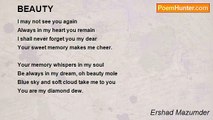 There is a beauty spot <br />Between the thighs of the eternal queen <br />created by the God. <br />For million years <br />Saints and dervish mediate <br />On the secrets of the beauty spot <br />But they failed. <br /> <br />The God creates a mind for the spot <br />It starts loving and thinking <br />What is God <br />And what is love.<br /><br />Ershad Mazumder<br /><br />http://www.poemhunter.com/poem/a-beauty-spot/
