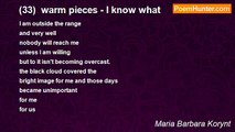 You are searching from the morning <br />for the oasis. It is only a mirage. <br />Don't delude yourself. <br />You didn't want to listen <br />to the roar of the calm river. <br /> <br />Therefore now, instead <br />of the caravan, alone donkeys <br />are pulling the hearse.Don't delude <br />yourself! It is also only a mirage. <br />You are on hot sand. <br /> <br />Fat is melting. It is sizzling. <br />You can finally fry what you have <br />and give it on deep, for of the ones <br />insatiable they. Still won't <br />have enough. These are 'Jaws'. <br /> <br />And in 'Igloo' are dancing the <br />undressed Eskimos.They are serving <br />burning bananas. <br />And in the 'Igloo' is dancing. <br />Warm coolness...<br /><br />Maria Barbara Korynt<br /><br />http://www.poemhunter.com/poem/a-warm-coolness/