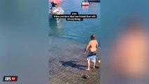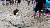 Hungry sea lion chases terrified people off the beach