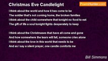Crystals that dangle and little bell jingles <br />And dreams beyond the milky way <br />A little fat man comes as fast as he can <br />The night before Christmas day <br /> <br />Up in his sleigh and off and away <br />Above the clouds and beneath the moon <br />All dressed in red, rosy cheeks so bright <br />Santa is coming to your roof top soon <br /> <br />The falling snow, the twinkle the glow <br />The smiles on the children, in dreams they know <br />They know him well, just ask and will tell <br />The smiles on their faces, they hear his bells <br /> <br />The jingle of bells all through the night <br />As tonight he makes good his flight <br />Clip clop and clop clop are the reindeer on roof tops <br />Santa, he comes tonight <br /> <br />In the small hearts of the youngest of beings <br />So very much loved, he lives in their dreams <br />One little fat man comes as fast as he can <br />Merry Christmas to you children this Christmas Eve <br /> <br />The falling snow, the twinkle the glow <br />The smiles on the children, in dreams they know <br />They know him well, just ask and will tell <br />The smiles on their faces, they hear his bells. <br /> <br />Copyright 2006 Bill Simmons <br />aka BillWilliamStar <br />BillWilliamStar@aol.com<br /><br />Bill Simmons<br /><br />http://www.poemhunter.com/poem/christmas-10/
