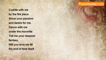 I miss you so there is a fire growing within <br />As i look in the mirror I can feel your hands <br />upon my breast Let them slowly slide down <br />to my thighs Miss the warmth of your touch <br />And your fingers running through my hair <br />How you fill my deepest passions My body <br />aches for your burning touch My love the <br />heat of my body is turned on high As thoughts <br />of you caressing my body fill my mind Tonight <br />my love I will dream And you will come set the <br />fire free As sweat covers my body from heated <br />thoughts of you My love hurry home <br /> <br /> <br /> <br />Written 6/15/05 <br />Copyrights Jackie Kirby 6/15/05<br /><br />Jackie Kirby<br /><br />http://www.poemhunter.com/poem/hurry-home/