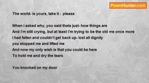I look intently <br />I can't see your star <br />The light that is your life <br />Is fading away <br /> <br />In between worlds <br />You sway <br />Which way will you go <br />So far away <br /> <br />Your growing colder <br />I'm calling your name <br />But so are they <br />Which way <br /> <br />Fading faster <br />Darkness so inviting <br />You will leave me <br />And your star is fading<br /><br />Guarded Heart<br /><br />http://www.poemhunter.com/poem/your-star/