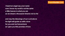 the life of my soul is you <br />and the breath that i take... <br /> <br />as we walk the aisle of joy <br />cross the bridges of emptiness.. <br /> <br />you are the man of my dreams <br />the man who always love me <br />you are the truth from heaven <br />wakes the sleeping 'me'.. <br /> <br />don't ever close your eyes <br />while staring at the sky <br />might you'll miss the moonshine <br />as witness for our love tonight... <br /> <br />i love you, i love you so much <br />no one can take your place in my heart <br />have you seen the falling star? <br />it's an omen from heaven, sign of a good start... <br /> <br />feel my heart...i am yours <br />feel my lips...it's all yours <br />feel the warmth of my love <br />it will never break your heart..<br /><br />lady grace<br /><br />http://www.poemhunter.com/poem/a-simple-promise-2/
