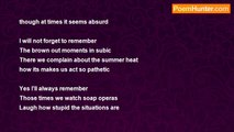 Viewing you in that position <br />Made me feel the pain your in <br />So I prayed to the holy one <br />To end the misery your feeling <br /> <br />Then I saw the memories we shared <br />It was full of smiles so precious <br />No pain, no problems were traced <br />Only the strong bond of our loving family <br /> <br />This made me see clearly <br />Were strong enough to get through this <br />This slope that shaked our path <br />Is something that we need to get through <br /> <br />So confident I am with what I saw <br />Not knowing that reality was changed <br />By a call full of grief and sorrow <br />Saying that your soul was set free <br /> <br />Eyes were awaken by the news so sudden <br />Rain fell from the pained river <br />Loud speechless voices echoed in my ears <br />But I need to move and let the others know <br /> <br />My prayer was granted by him <br />But not the way I'm expecting it to be <br />All your miseries vanished <br />While the gap of the river opened wider <br /> <br />The words used in the songs I loved <br />Understood today by my tearful heart <br />Slow melody, so solemn <br />Felt like it's meant for me to love it <br /> <br />Now, i don't know what will be next <br />Expecting is something that is impossible <br />For our tomorrow will never be the same <br />Coz' It'll be a life that is longing for you <br /> <br />Even though it is hard to do <br />The bird should be set free <br />To fly as high as it could <br />With full confidence and without hesitation <br /> <br />We love you and we will miss you <br />And now we are setting you free <br />You are free to fly free to go <br />But please, guide us constantly <br /> <br />....A poem for my grandma....<br /><br />Lorena Lalen Cruz<br /><br />http://www.poemhunter.com/poem/the-bird-set-free/