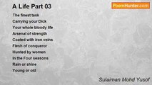 The mist crosses <br />The lonesome ocean <br />With sporadic sighs <br />Making a huge comeback <br />Out of raining bullets <br />From sparkling stars <br />Taming turbulence isn’t a rarity <br />But a cup of coffee <br />Fishmongers maneuver fish laden tugs <br />Had flashback nightmares <br />The silence <br />That breaks dream <br />Out of casket <br /> <br />Suddenly <br />The mountain that stands tall <br />Behind the horizon <br />Stops vomiting its minerals <br />Open the path of adoration <br />Commences <br /> <br />Entrapment <br />A varsity of perspective <br />Infinites mass antiquities <br />The natives wait <br />Chanting songs of universal <br />A new lease of life emerges <br />Tradition of ages <br /> <br />The first love that anchors <br />On the Paradise <br />Brings smile of ambulation <br />Hope of pro-creation <br />Another frontier <br />Another land <br />New religion <br />New language <br /> <br />An annexation <br />Without bloodshed<br /><br />Sulaiman Mohd Yusof<br /><br />http://www.poemhunter.com/poem/the-fall-19/