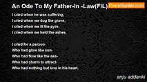 The Law that gives you Affection- <br />With reflection of Father <br /> Is 'Father-In-Law'. <br /> <br />The Law that isNear- <br />And is very Dear <br /> Is 'Mother-In-Law'. <br /> <br />The Law that is Spicy- <br />But still not Lousy <br /> Is 'Sister-In-Law'. <br /> <br />The Law that is Pranky- <br />Which makes you Cranky <br /> Is 'Brother-In -Law'. <br /> <br />The Law that combines; <br /> The Affection <br /> With Near and Dear <br /> Eats the spice <br /> Laughs on Pranks <br /> <br />Is Daughter-In-Law.<br /><br />anju addanki<br /><br />http://www.poemhunter.com/poem/laws-2/