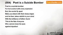 A caterpiller made of steel <br />ran over bones parallel......<br /><br />premji premji<br /><br />http://www.poemhunter.com/poem/171-suicide/