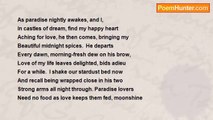 The estuary smiled at the sunset, tide <br />Washing in gently meant summer's day waned. <br />I walked the bank admiring the scene beside <br />Small misty beach, tidal fields always gain <br />A way into my heart. <br /> <br />Glancing across flood-plain, thankful for calm, <br />I saw sudden vast ripples surging in <br />Like submarine action and brought me alarm <br />Until told it was shoals of mullet-fin. <br />Sport was about to start. <br /> <br />Chaos soon reigned when for a while fish offered <br />Wild silver-spin dancing, dusk saw them begin <br />To surface inside tight rings, which prompted <br />Expulsion, leaping for flies showed strength akin <br />To the habits of shark. <br /> <br />Stirring water, such vibrant life displayed <br />Communal gain, - fed my heart too as I <br />Stood agape, while as twilight fell away <br />Frenzy continued of fish versus fly. <br />What a night-life party!<br /><br />Fay Slimm<br /><br />http://www.poemhunter.com/poem/night-life-8/