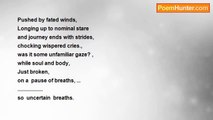 I wanted to see you, <br />In dreams, <br />and always, <br />It lingers, <br />Like mists, <br />and smokes, <br />In spaces, <br />before my visions, <br />but in realities people, <br />find epmty mosaics, <br />filled with airs, <br />rather beautiful fluids, <br />Like wines of dreams, <br />so in a jiffy, <br />I saw you, <br />In a crowd, <br />like a cloud, <br />below a hot sun, <br />I felt everything drifting, <br />in my eyes, <br />i found my self, <br />alone, <br />and nothing, <br />alive around me, <br />I walked a journey, <br />on a barren road of life, <br />and smokes became still, <br />before my eyes,<br /><br />Rafique Farooqi<br /><br />http://www.poemhunter.com/poem/unusual-stresses/