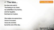 The Sweetest Kiss... <br />In her sleepy voice.. almost one in the morning.. <br />She tells me she loves me.. <br />Giving me a little kiss over the phone.. <br />Damn.. my heart just melted on the spot.. <br /> <br />I'm loving every moment of this.. <br />knowing she is mines.. all mines.. <br />Theres no room for jealousy.. <br />no room for fights.. <br />for her and I seems perfect as can be.. <br /> <br />Every moment she talks to me.. all I do is smile.. <br />The stars never been so bright.. <br />My heart never raced so much in my life.. <br />just telling her I love you.. <br />Makes everything right.. <br /> <br />No tears to be dropped.. <br />No fights to be drawn.. <br />No fuss.. of nothing to occur.. <br /> <br />just love... <br />and just me and her... <br /> <br />and the sweetest kiss.. that draws me closer to you...<br /><br />Dislocated Heart<br /><br />http://www.poemhunter.com/poem/the-sweetest-kiss-2/