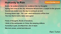 Like a soft breeze that, barely there, sifts the papers on my table. <br />A window, open, and the curtains move gently. <br />A memory, that should not have been there. <br />An emotion that barely acknowledged should have known better. <br /> <br />Some serious men dissected my emotions. <br />An existence that, in existing, forgot to be. <br /> <br />A faraway pain, like a bird, alights on my hand, <br />Some ice on distant mountains settles in my heart. <br />All my experiences could not help me to understand <br />Why pain has be analysed, why the soul in crisis <br />Has to dissect, react and realise. <br /> <br />Pain is more than a commodity <br />More than a substance that can be caged <br />Artists and poets have used it in its intensity <br />And often, often sunk under the weight of its density. <br /> <br />I am one with this emotion. <br />It has become a part of this whole. <br />Remove it now and then I fear <br />That it will leave a painful, abyssmal hole.<br /><br />Rani Turton<br /><br />http://www.poemhunter.com/poem/analysing-that-pain/