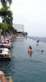 The stunning skyline view recorded from the famous 57th floor rooftop pool at Marina Bay Sands resort in Singapore. Would you be willing to swim to the edge?