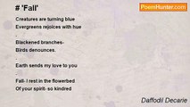 For why should I care <br />...If Daffodils kiss in spring <br />Embrace May for a moment <br />and burnt totally in June- <br />. <br />I kissed you in August-September <br />In times, I cannot remember. <br />I kissed you in the rain <br />I kissed you in the Car <br />In the streets. <br />I kiss, you kissed back. <br />. <br />You satisfied my curiosity <br />Yet we can't defy destiny- <br />Forever you'll leave me <br />thirsty for more touches <br />Confectionary lips- meringue kiss <br />This- I want you to know... <br />. <br />Why should I care if I <br />Kiss you under the gutter <br />Kiss you better and better <br />Kiss you again and again <br />. <br />And again, within heats sizzles, <br />under the tears of moonsoon, <br />A rampage of a confounded typhoon- <br />Who cares if we kiss- <br />As if we are Nature at its best. <br />. <br />Who cares if our kiss is errata, <br />A prettified Golgi-you-and-I <br />In self-realization. But never a religion <br />... For why should I care about the science, <br />cosmic mathematics of every thing. <br />But loving you in all rectified -here-and-now. <br />. <br />end <br /> <br />Yesyes, been awhile since I last posted here... glad to be back. Hope everyone is doing well: ]<br /><br />Daffodil Decarie<br /><br />http://www.poemhunter.com/poem/kiss-before-i-fall-to-care/