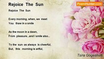 As Sun-Song <br /> <br /> We wandered long in valleys under the sun <br /> Near scarlet poppies and white camomiles... <br />He began a song and butterflies repeated words.... <br /> With smallest wings rustle night's moon light...<br /><br />Tsira Gogeshvili<br /><br />http://www.poemhunter.com/poem/as-sun-song/