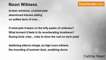 Once in a high noon – Wednesday <br />Leisurely, the nightjar and goldcrest <br />Took the weight off their feet <br />By the limbs of juniper and fir tree <br />Wherein names in vast crowd <br />Raced towards the high throne <br />And walked on the red carpet <br />Of beauteous gorgeous eminent <br />Of painters, playwrights and artists <br /> <br />She was eager to bestow her sail <br />To fairy godmother of all fate <br />A choice rendered in a heartbreaking work <br />Of the melancholic strings of harp <br />She stepped backwards, inch by inch <br />String by string, notes flew on wings <br />Her silence held on a bite of lip <br />And gone away in teary eyed pearls <br /> <br />Upon the horde of famous thespian <br />Where all viewers have eyes on fuss <br />She forwent and ripped her own <br />Yielded you to the cuckoo bird of love <br />Who sung melodious canto of charm? <br />Who was eligible to tease and dance? <br />Like parakeet or cockatoo on romance <br />As the white flag raised, lovers’ era and break <br /> <br />Red lane opened on a center stage <br />Where amorous heart seen right, untainted <br />Played the chords of zealous account of love <br />Bestowed to someone who would hold your hand? <br />Someone who would care on the endless nights <br />Someone who would love you more in each passing daylights <br />But it turned out not to be… just another disguise <br />Another play of fire, another game to their mind…<br /><br />Catrina Heart<br /><br />http://www.poemhunter.com/poem/high-noon-8/