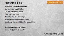 When you cried, I was there to lift you up <br />Make you whole again <br />You always said I helped mend your broken heart <br />But you always said I would never lose your hand <br />Now I know that what we were was so pathetic <br />Just contemplating <br />Indescribable synthetic makeup of a heart <br />Crisscrossing over, underneath our veins connected <br /> <br />But everything is wrong now, everything was right <br />Who’s to say our masochistic way of thinking <br />Was nothing but a lie? <br /> <br />Gave in to romance <br />A novel with our faces on the cover <br />Never read the ending <br />Wish I had then maybe I’d be sober <br />Instead I’m so deadly hung-over <br />A grave, unsteady pile of stones <br />Ready to tumble and crush you in your sleep <br />This is my final tribute to you <br /> <br />Eighteen.<br /><br />Christopher's Dead<br /><br />http://www.poemhunter.com/poem/18-a-final-tribute/