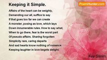 The colossus of gigantic Dedication, piled high <br />with tasks on each skyline, <br />could make travelling pilgrims stop short soon, <br />shake life, and moderate <br />their view of Emacipation, which is baffling. <br /> <br />Full speed ahead is the rule. <br />No dawdling please, don't pick those daisies. <br />Do not even look. <br />Hedges of boomtime, designed to goad <br />really do scratch, eventually. <br />Crazy demands for time make half a day truly <br />reduced, and taking full toll-pay on health, <br />gold is seen grabbing central stage. <br />Making it through to success without lucre <br />appears stealthy, and secret redemption <br />from wealth is ranked costly. <br /> <br />But nuggets of wisdom pale if not chewed. <br />Simplicity's peace gives time, <br />which need never be lost. <br />Solutions are there to ease life's weary state. <br />In freeing time, time will reciprocate.<br /><br />Fay Slimm<br /><br />http://www.poemhunter.com/poem/making-it-through/