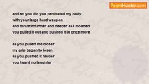 love is like oxygen <br />you cant live without it <br />we only need one thing <br />and that is men <br /> <br />there is one man you see <br />but this man isnt perfect <br />he did some thing terrible <br />something so bad, <br />he killed me. <br /> <br />lets start from the beginning <br />from where all this started <br />my life was going great <br />but one night i got home late <br /> <br />he pushed me and shoved me <br />he acussed and abused me <br />shouting i thought you loved me <br />i swore i didnt do it you didnt beleive <br /> <br />you shouted at me and said your dead b**ch <br />you left the house shouting behind you <br />ill be back youll see then your dead <br />i ran after you and shouted down the road <br />i didnt cheat i said <br /> <br />i went back in the house <br />i locked the door and closed the blinds <br />i climbed into bed and started to cry <br />slowly i began to close my eyes <br /> <br />as i slept <br />you crept <br />you raised the knife above my head <br />and as you stabbed my bed turned red <br /> <br />as i screamed you stabbed me more <br />when you finished you dropped the knife on the floor <br />you leaned over me and checked my pulse <br />i was still alive <br /> <br />you raised the double barreled shout gun <br />and shouted im going to shoot you <br />here it comes <br />i opened my eyes and said one last thing <br /> <br />before you shot me in the head <br />'im pregnant' <br />and now im dead <br />i didnt get the chance to be a mum <br /> <br />you took that away from me <br />and now i hate you its from me to you <br />but the baby in my womb was yours <br />and i didnt cheat <br /> <br />you were so angery you didnt see <br />i was at the doctors <br />i was pregnant with your baby <br />and now i had to leave <br /> <br />you shot me in the head <br />you filled me and your baby with lead <br />now your here with me <br />coz you emptyed the handgun barrel into your head<br /><br />charlotte marie peachey<br /><br />http://www.poemhunter.com/poem/im-pregnant/