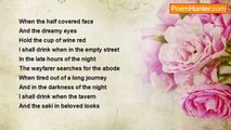 Drink drink sire <br />None other times <br />Insistent more <br />No other shadow <br />But thyself <br />Moon and stars <br /> <br />Drink drink sire <br />Thy creed to followers <br />Lonely hearts <br />Under the moon <br />And in the flowers <br /> <br />Drink drink sire <br />What times other <br />What seasons other <br />Spring and stars <br />And the moon <br />And song of love <br /> <br />Drink drink sire <br />To the last drop <br />Un satiated <br />More and more <br />From moon now <br />To stars now <br />To milky way <br /> <br />Drink drink sire <br />To the passion of drink <br />To meet again in the journey <br /> <br />For Li Po <br /> <br />Islamabad <br />17/3/2010<br /><br />Sadiqullah Khan<br /><br />http://www.poemhunter.com/poem/drink-drink-sire/