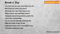 We knew too little of the world, <br />And you and I were good— <br />’Twas paltry things that wrecked our lives <br />As well I knew they would. <br />The people said our love was dead, <br />But how were they to know? <br />Ah! had we loved each other less <br />We’d not have quarrelled so. <br />We knew too little of the world, <br />And you and I were kind, <br />We listened to what others said <br />And both of us were blind. <br />The people said ’twas selfishness, <br />But how were they to know? <br />Ah! had we both more selfish been <br />We’d not have parted so. <br /> <br />But still when all seems lost on earth <br />Then heaven sets a sign— <br />Kneel down beside your lonely bed, <br />And I will kneel by mine, <br />And let us pray for happy days— <br />Like those of long ago. <br />Ah! had we knelt together then <br />We’d not have parted so.<br /><br />Henry Lawson<br /><br />http://www.poemhunter.com/poem/the-separation/