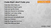 I hate the hate that resides in me now <br /> <br />I hate the hate that is so heavy it weighs me down <br />I hate the hate that keeps my emotions tightly wound <br /> <br />I hate the hate that charges my wall <br />I hate the hate that lies to strengthen my fall <br /> <br />I hate the hate that has me in chains <br />I hate the hate that courses through my veins <br /> <br />I hate the hate that is a shadow at my side <br />I hate the hate that has stolen my mind <br /> <br />I hate the hate that blinds me from the stars <br />I hate the hate that has created my war <br /> <br />I hate the hate that has stolen my grace <br /> <br />My scarlet letter written all over my face<br /><br />Adalie Hettie<br /><br />http://www.poemhunter.com/poem/the-hate-that-i-hate/