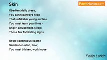 Side by side, their faces blurred, <br />The earl and countess lie in stone, <br />Their proper habits vaguely shown <br />As jointed armour, stiffened pleat, <br />And that faint hint of the absurd - <br />The little dogs under their feet. <br /> <br />Such plainness of the pre-baroque <br />Hardly involves the eye, until <br />It meets his left-hand gauntlet, still <br />Clasped empty in the other; and <br />One sees, with a sharp tender shock, <br />His hand withdrawn, holding her hand. <br /> <br />They would not think to lie so long. <br />Such faithfulness in effigy <br />Was just a detail friends would see: <br />A sculptor's sweet commissioned grace <br />Thrown off in helping to prolong <br />The Latin names around the base. <br /> <br />They would no guess how early in <br />Their supine stationary voyage <br />The air would change to soundless damage, <br />Turn the old tenantry away; <br />How soon succeeding eyes begin <br />To look, not read. Rigidly they <br /> <br />Persisted, linked, through lengths and breadths <br />Of time. Snow fell, undated. Light <br />Each summer thronged the grass. A bright <br />Litter of birdcalls strewed the same <br />Bone-littered ground. And up the paths <br />The endless altered people came, <br /> <br />Washing at their identity. <br />Now, helpless in the hollow of <br />An unarmorial age, a trough <br />Of smoke in slow suspended skeins <br />Above their scrap of history, <br />Only an attitude remains: <br /> <br />Time has transfigures them into <br />Untruth. The stone fidelity <br />They hardly meant has come to be <br />Their final blazon, and to prove <br />Our almost-instinct almost true: <br />What will survive of us is love.<br /><br />Philip Larkin<br /><br />http://www.poemhunter.com/poem/an-arundel-tomb/