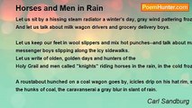 A million young workmen straight and strong lay stiff on the grass and roads, <br />And the million are now under soil and their rottening flesh will in the years feed roots of blood-red roses. <br />Yes, this million of young workmen slaughtered one another and never saw their red hands. <br />And oh, it would have been a great job of killing and a new and beautiful thing under the sun if the million knew why they hacked and tore each other to death. <br />The kings are grinning, the Kaiser and the czar—they are alive riding in leather-seated motor cars, and they have their women and roses for ease, and they eat fresh-poached eggs for breakfast, new butter on toast, sitting in tall water-tight houses reading the news of war. <br />I dreamed a million ghosts of the young workmen rose in their shirts all soaked in crimson … and yelled: <br />God damn the grinning kings, God damn the kaiser and the czar.<br /><br />Carl Sandburg<br /><br />http://www.poemhunter.com/poem/a-million-young-work-men/