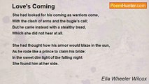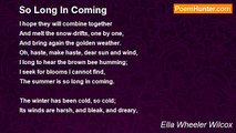 Oh, not for the great departed, <br />Who formed our country's laws, <br />And not for the bravest-hearted <br />Who died in freedom's cause, <br />And not for some living hero <br />To whom all bend the knee, <br />My muse would raise her song of praise- <br />But for the man to be. <br /> <br />For out of the strife which woman <br />Is passing through to-day, <br />A man that is more than human <br />Shall yet be born, I say. <br />A man in whose pure spirit <br />No dross of self will lurk; <br />A man who is strong to cope with wrong, <br />A man who is proud to work. <br /> <br />A man with hope undaunted, <br />A man with godlike power, <br />Shall come when he most is wanted, <br />Shall come at the needed hour. <br />He shall silence the din and clamor <br />Of clan disputing with clan, <br />And toil's long fight with purse-proud might <br />Shall triumph through this man. <br /> <br />I know he is coming, coming, <br />To help, to guide, to save. <br />Though I hear no martial drumming, <br />And see no flags that wave. <br />But the great soul travail of woman, <br />And the bold free thought unfurled, <br />Are heralds that say he is on the way- <br />The coming man of the world. <br /> <br />Mourn not for vanished ages <br />With their great heroic men, <br />Who dwell in history's pages <br />And live in the poet's pen. <br />For the grandest times are before us, <br />And the world is yet to see <br />The noblest worth of this old earth <br />In the men that are to be.<br /><br />Ella Wheeler Wilcox<br /><br />http://www.poemhunter.com/poem/the-coming-man-3/